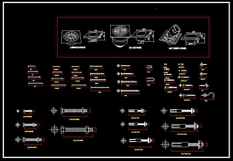 Enthält die folgenden CAD-Symbole:Schraube, Rundmutter, Ringmutter, Sechskantschrauben, Sechskantmuttern, Die Stirnfläche Gürtel, Kongyuan Schrauben, Senkkopfschrauben, den Hebel ziehen, Metallwerkstatt elektrische Zeichnungen